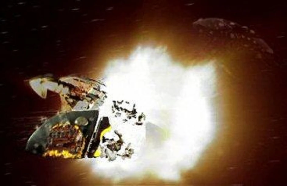 Posing as an Andorian craft, the Romulan drone-ship intercepted Enterprise. On the bridge of the Starfleet vessel, Commander Shran unsuccessfully attempted to call off the attack and announced that Andorian officers were aboard Enterprise. Lieutenant Reed fired the starship's phase cannons at the disguised drone-ship, but no damage was caused. When Reed fired torpedoes at the drone-ship, the Romulan vessel retreated. Apparently, the Andorian warship had taken damage to its power grid, although that section hadn't been targeted in the conflict.