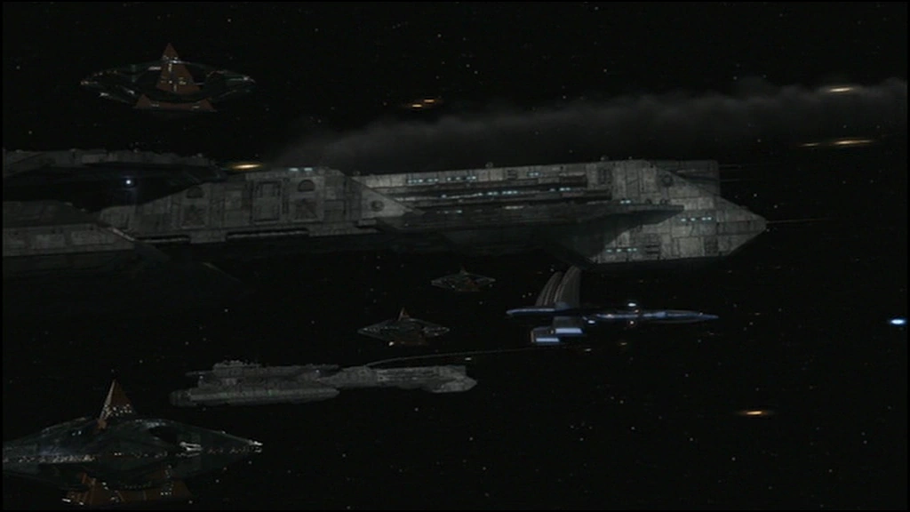 The combined forces of the Tau'ri, Jaffa, Tok'ra and Asgard facing off the Ori fleet.
