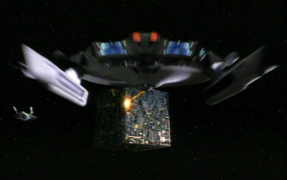 Following the battle, the cube resumed course towards Earth, completely undamaged. The Enterprise, having finally completed repairs, raced to catch up to the Borg. In preparation for a Borg invasion of Earth, a state of emergency was declared on the planet. Using the recaptured Locutus and his link to the collective mind of the Borg, the Enterprise crew however managed to plant subversive commands to deactivate and destroy the Borg ship in Earth orbit.