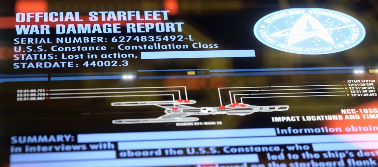 The Constellation-class USS Constance was also a participant in the battle. One officer, Liam Shaw, then an engineer, was one of 50 survivors aboard. He and the other survivors made their way to the life deck, but discovered there was only one ten-person escape pod remaining. Ultimately, a lieutenant would arrive and randomly select him and nine others to board the lifeboat and abandon ship, leaving the other 41 to perish aboard. The psychological impact of the battle and his survivor guilt would remain with him for the next 34 years, following him to his captaincy of the USS Titan-A in 2401.