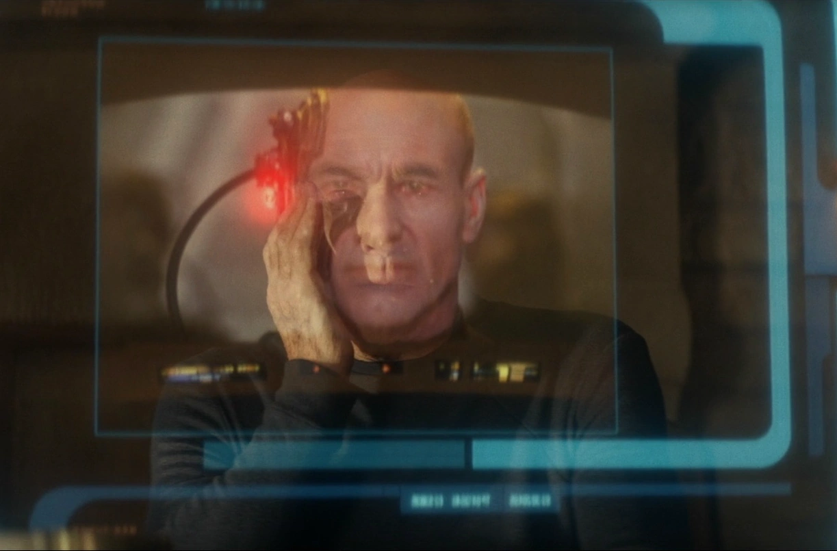 In 2399, Picard faced a far more invasive confrontation with his past as Locutus, when he was forced to visit the Artifact, a derelict Borg cube under Romulan control, in order to save Soji Asha, who Picard believed to be a spiritual daughter of his friend Data who had died in the Shinzon-incident. During his research into the Artifact, he came across an Enterprise-D viewscreen caption of Locutus, which caused him to freeze and to involuntarily check his face for the Borg implants, removed over three decades before. While on the Artifact, Picard was nearly overcome by severe anxiety attacks, complete with memory flashes from his time as Locutus, but was quite literally brought back from the brink by an old acquaintance, the xB Hugh, who served as director of the Borg Reclamation Project on the Artifact, and who not only helped Picard to come to grips with his past experiences to some extent, but also helped him to achieve his mission. While escaping the Artifact, Picard was recognized by one of the xBs as Locutus, just as he had feared before he set foot on the derelict cube. (PIC episode: "The Impossible Box")