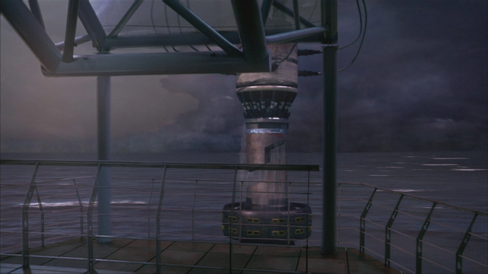 City-ships were equipped with hundreds of lightning rods which were connected to four main Grounding stations, which were used to channel lightning strikes away from the fragile hull of the city itself. The electricity was redirected into the water or ground surrounding the city, preventing any damage to the vessel. Two were located in the central part of the city while another two were located on its outskirts, near the edge of the piers. It was possible to disable a grounding station by entering a code which separated the grounding station from the rest of the city, causing a lightning strike to run rampantly within the corridors of the City-ship.