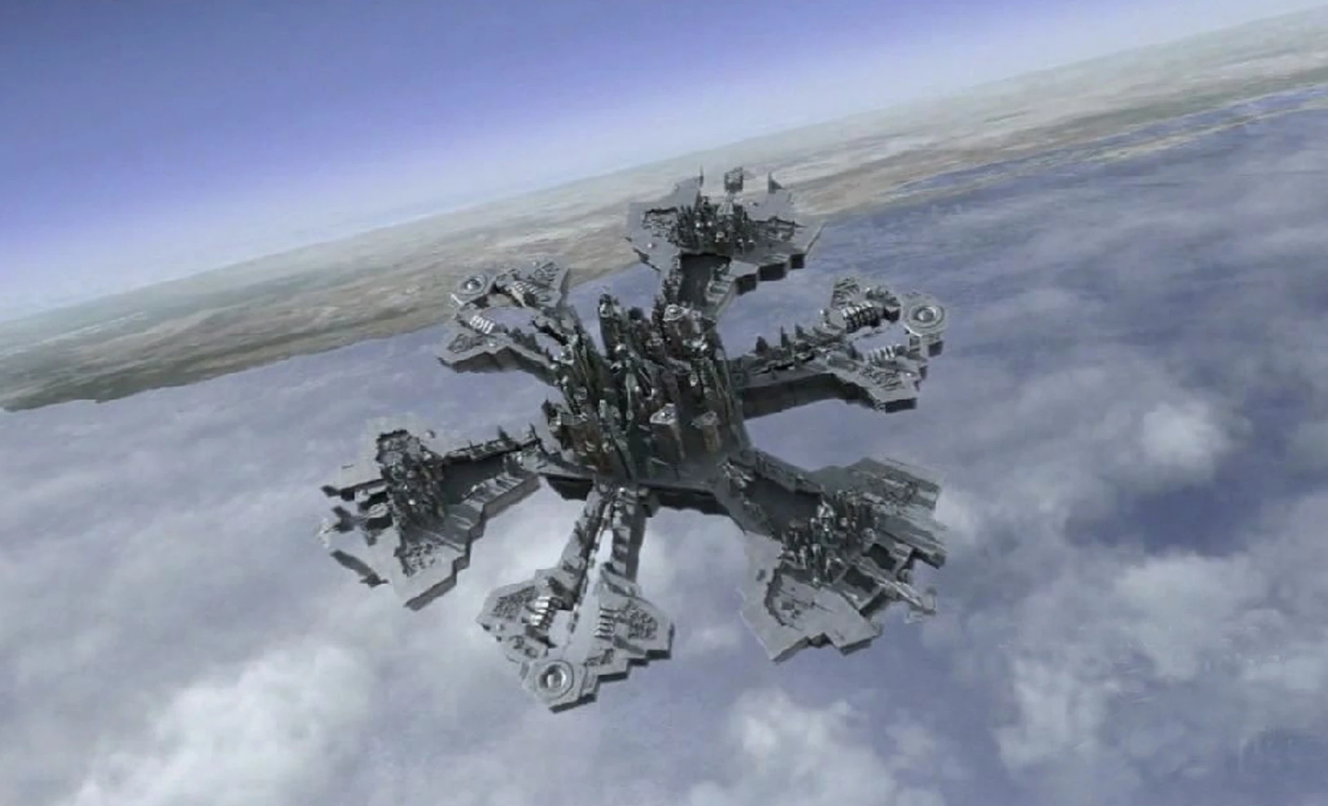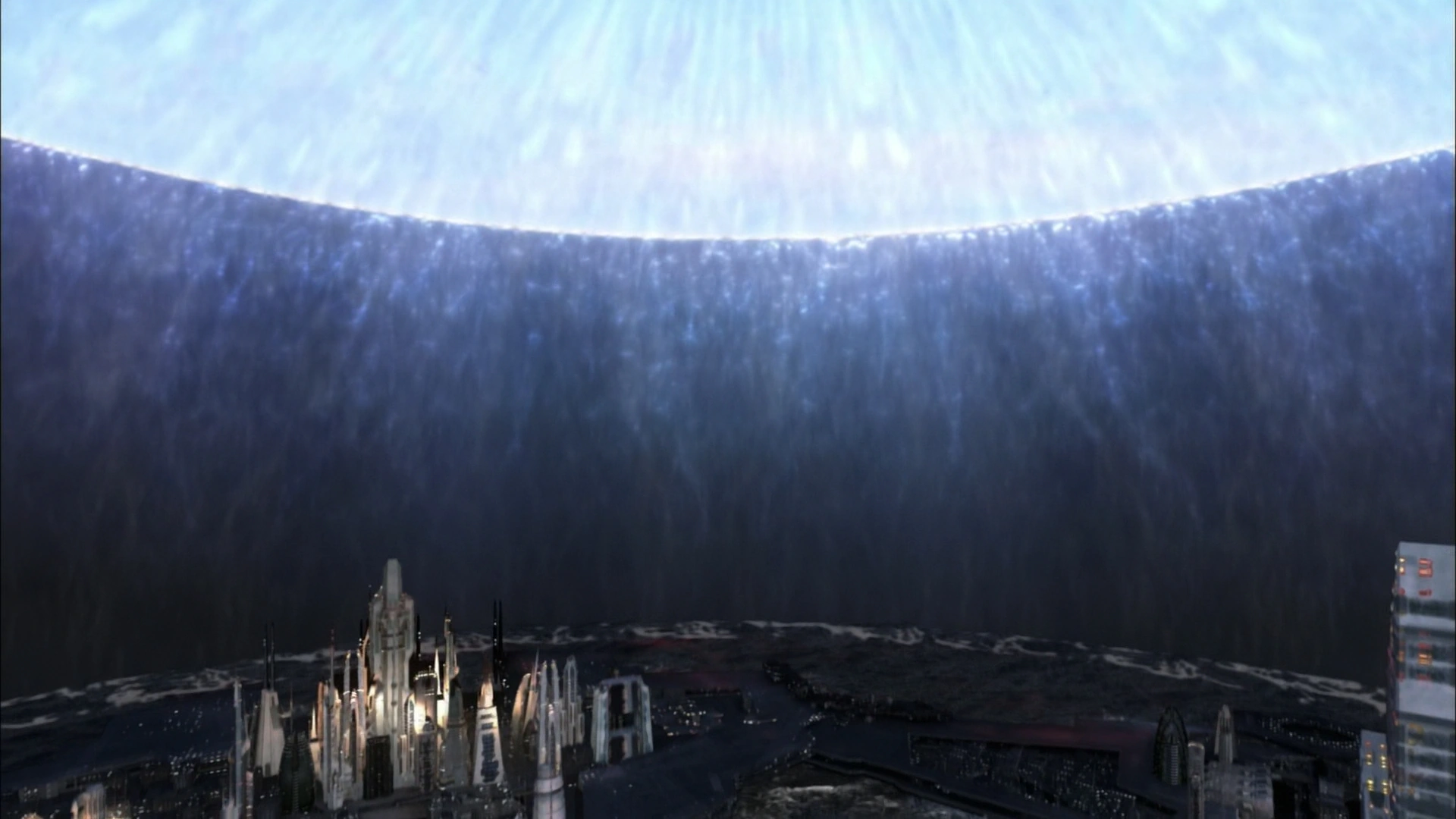 The underside of the city contains the massive Stardrive, an area to dock the City-ship around other buildings, and clamps to hold the city onto solid ground. Surprisingly, the hull of a City-ship is remarkably fragile in comparison to other space-faring vessels, and so a City-ship requires its powerful shield to protect it from such threats as orbital bombardment, natural weather phenomena, and the hazards of space travel.