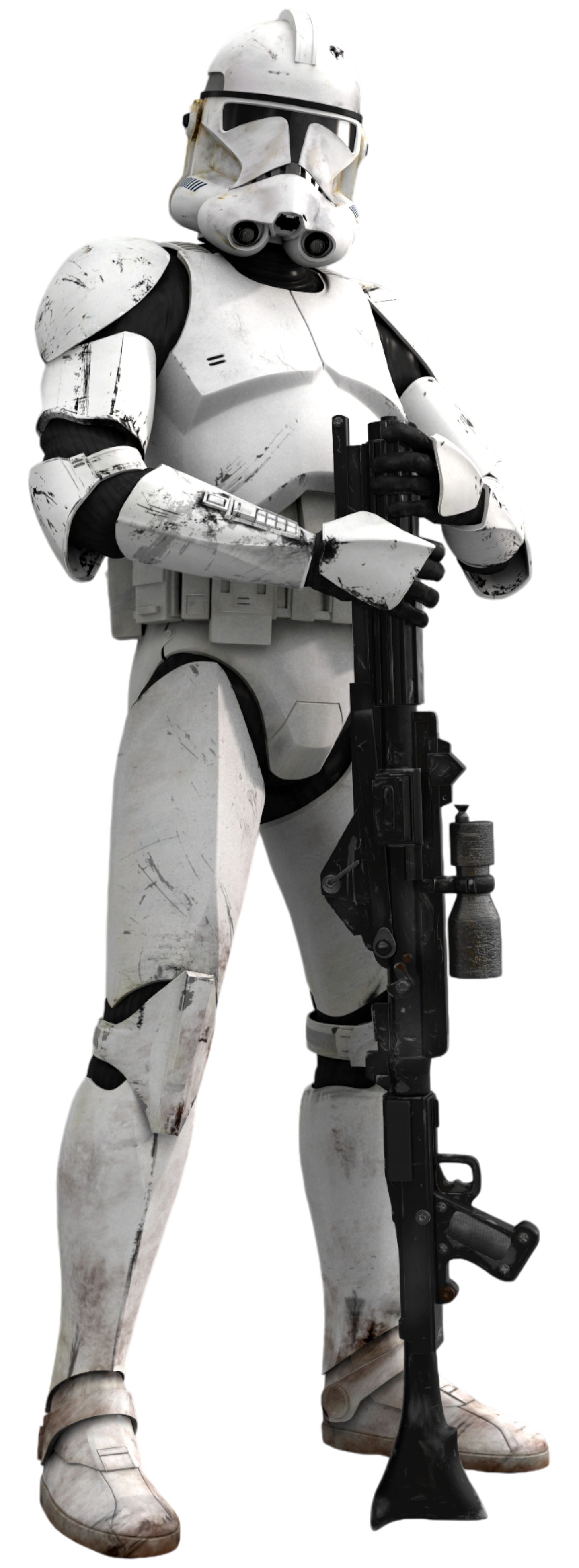 Clone troopers were highly trained soldiers in the clone army, a sub-unit of the Der'kal Army. Bred from the genetic template of a human bounty hunter, clone troopers represented the latest evolution in galactic warfare at the time, largely due to their superiority over other soldiers of the Der'kal Empire.