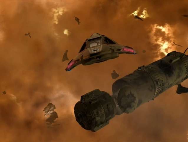 The Delta Flyer being chased by the USS Challenger