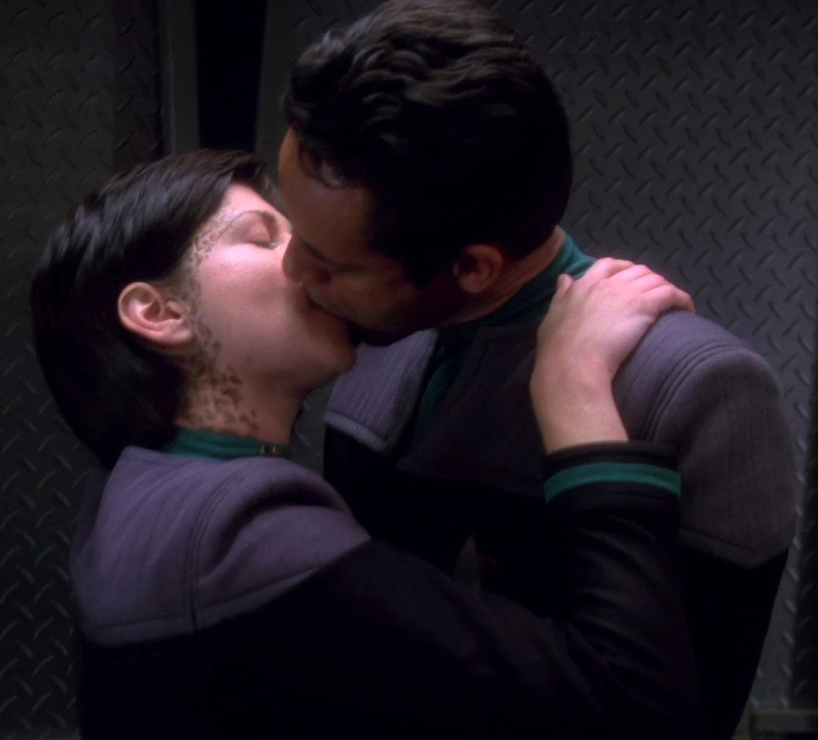 Just prior to the end of the war in 2375, Ezri began a relationship with Dr. Julian Bashir, who may have had unresolved feelings for her previous host, Jadzia. (Star Trek: Deep Space Nine episode: "The Dogs of War")