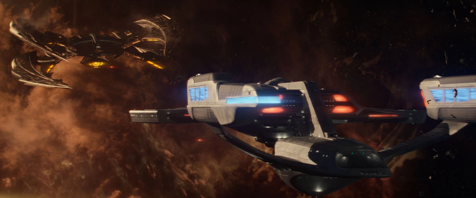 The Shrike soon resumed pursuit, using stolen portal technology to forcibly redirect the Titan-A away from the nebula's edge. Commander Seven and Jack Crusher successfully repaired a verterium leak, intentionally caused by a Changeling posing as Ensign Eli Foster, that was allowing Vadic to track the Titan. However, before the Titan could leave the nebula, this same Changeling disabled the repaired warp drive with an explosive. Captain Riker opened fire on the Shrike, which used its portal tech to redirect the torpedo volley at the Titan, causing it to lose all propulsion and fall into the nebula's central gravity well. (PIC episode: "Seventeen Seconds")