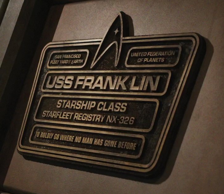 The Franklin was the first starship of Earth's Starfleet to reach warp four. Among its armaments were pulsed phase cannons and spatial torpedoes, with polarized hull plating for defense. Among its vehicles were some shuttlepods and a PX-70 motorcycle. Some uniforms, jackets and medical equipment were left aboard.