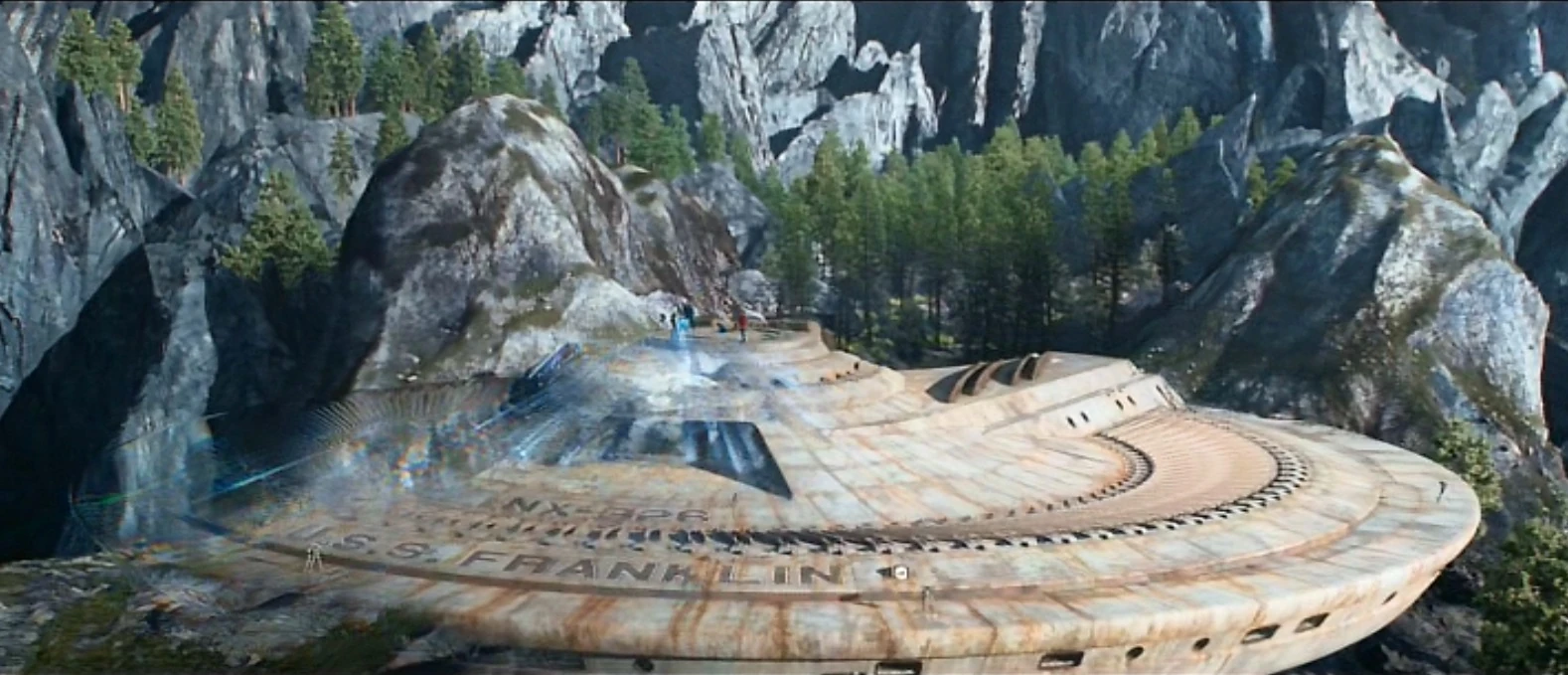 In an alternate reality created by Nero's time travel, the Franklin was rediscovered in 2263 by Captain James T. Kirk and the survivors of the USS Enterprise crashed on the planet Altamid. By then it was the home of Jaylah, who had placed it under a holographic cloak to hide the ship from Edison, who by then was known as Krall.