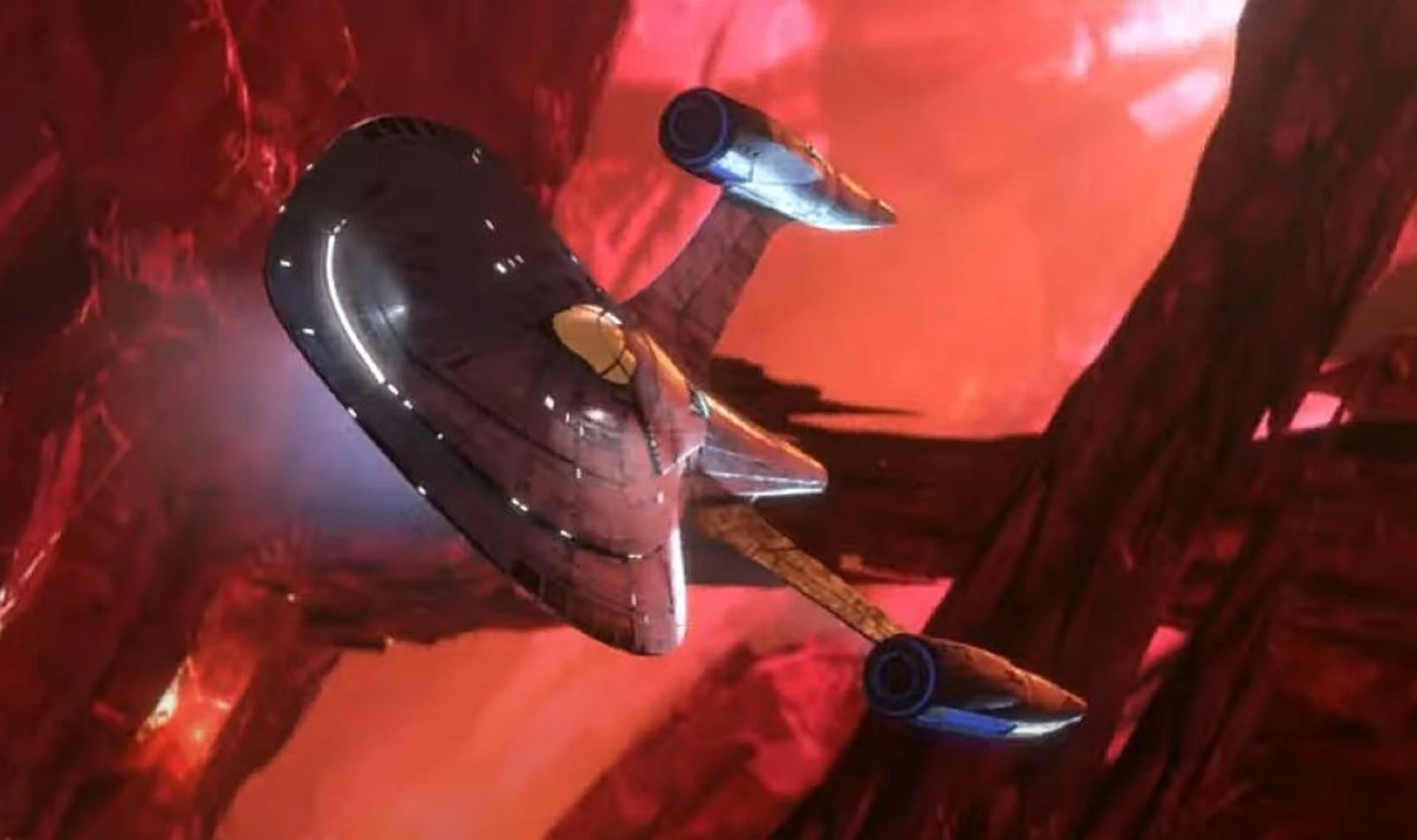 The Vau N'Akat individual known as the Diviner searched for the Protostar. It was found by two children trying to escape from the Diviner's prison colony on Tars Lamora in 2383. Dal R'El and Rok-Tahk found the ship lying in the Northwest Crevasse of the colony. During their attempt to launch it, the ship initially slipped away and fell down the crevasse.